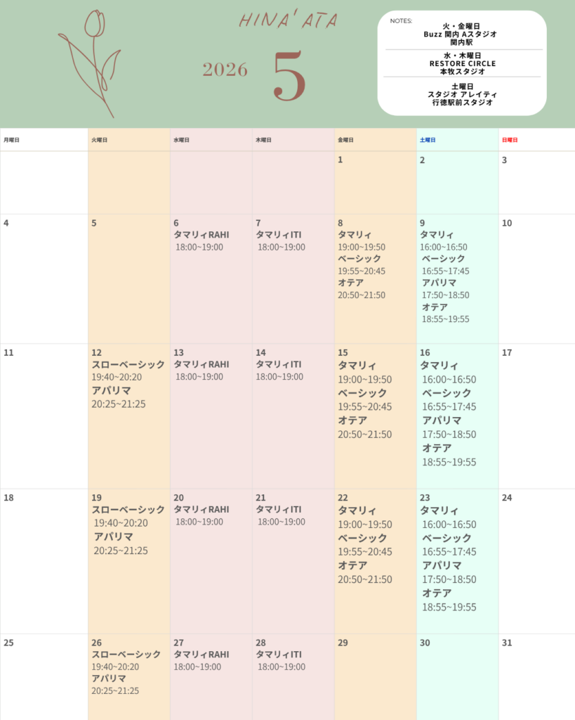 🌴Tamari’i RAHI クラス(本牧)